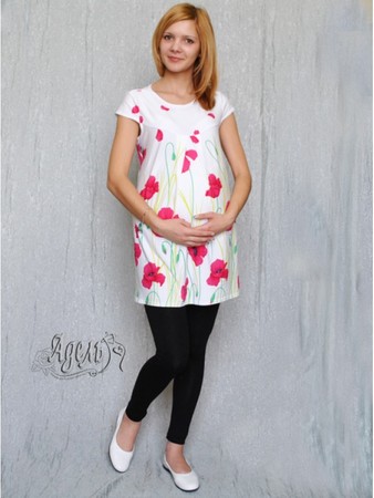 Оригинальная трикотажная туника из вискозного трикотажа с рисунком.Лиф с фигурной кокеткой и встречной складкой на животик. Дизайн изделия подчеркнет индивидуальность в создании неповторимых образов. Отличный вариант для женского гардероба.Можно носить на любом сроке беременности и после родов.