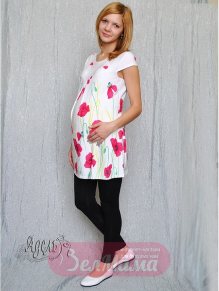 Блузка-туника из тонкого трикотажа яркой расцветки на любой срок беременности. Лиф на запахе,под грудью планка переходящая в пояс (завязывается по спинке). Отличный вариант для жаркого лета, а так же для кормления.