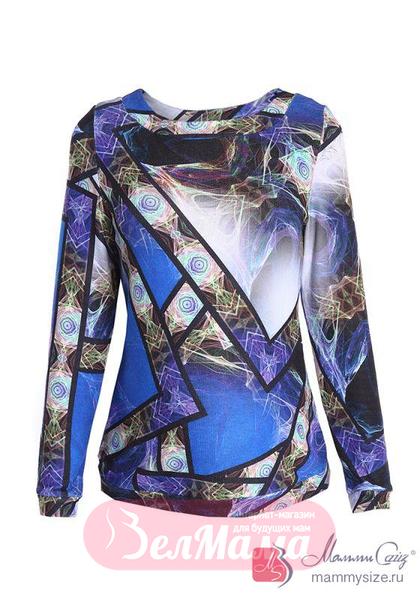 Трикотажная блуза из принтованного полотна полуприлегающего силуэта с длинным рукавом на манжете.
